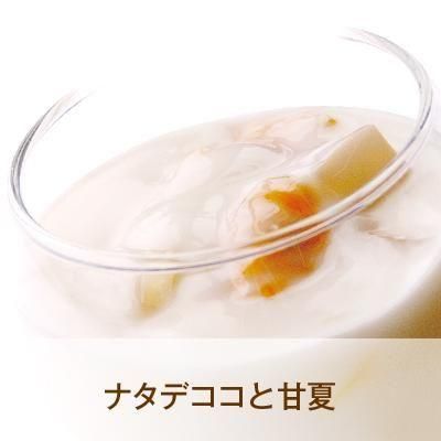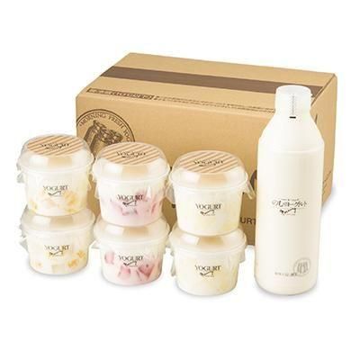 旬の果実を使った「季節の果実入りヨーグルト」を2種と、モーニングで一番人気の「ナタデココと甘夏ヨーグルト」、マイルドな口あたりの「のむヨーグルト」を詰合せました。