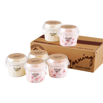 旬の果実を使った「季節の果実入りヨーグルト」を2種3個ずつ詰合せました。200gの食べきりサイズは少人数のご家庭や、ちょっとした季節の贈り物としてもおすすめです。