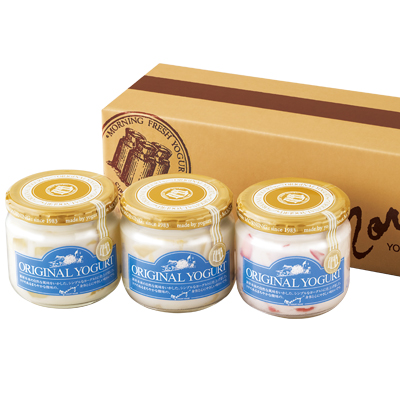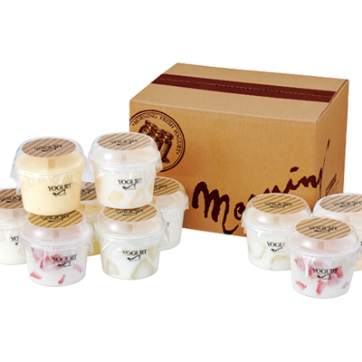 旬の果実を使った「季節の果実入りヨーグルト」を3種と、親しみやすい味わいの「オレンジ」と「加糖」を2個ずつ詰合せました。季節の贈り物にぴったりのセットです。