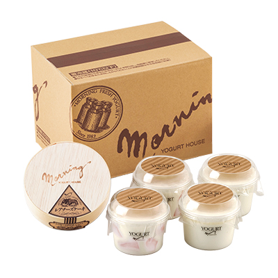 「桃の果実入りヨーグルト」と「加糖ヨーグルト」、コクのある味わいで飽きのこないおいしさの「レアチーズケーキ」を詰合せました。ヨーグルトは200gの食べきりサイズにリニューアルいたしました!